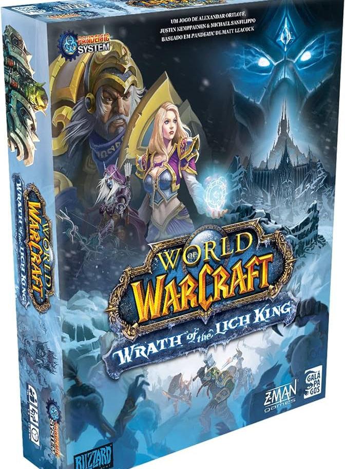Em World of Warcraft: Wrath of the Lich King, os jogadores viajam para o continente congelado de Northrend para enfrentar os exércitos do Lich King. Este jogo "Pandemic System" apresenta mecanismos e jogabilidade familiares, agora ajustados para abraçar o cenário da Ira do Lich King. Fortes, templos, campos de batalha e muito mais povoam o tabuleiro de jogo enquanto você e seus companheiros heróis viajam pela paisagem fria. Ao longo do caminho, você estabelecerá fortalezas, completará missões e batalhará com legiões de carniçais.