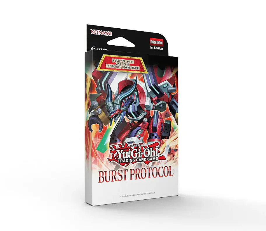 A Tuck Box de Yu-Gi-Oh! Burst Protocol (lançamento previsto para o início de 2026) é um produto focado no arquétipo "Borrel" e "Rokket", inspirado no personagem Varis (Revolver) de Yu-Gi-Oh! VRAINS. Ela traz suporte a Dragões, incluindo o poderoso Dragão Borrelend, e introduz novas cartas como a Magia Rápida "Coroa Proibida".